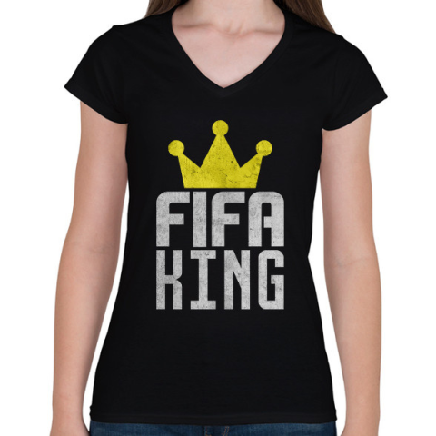 1 kép PRINTFASHION Fifa King - Női V-nyakú póló - Fekete