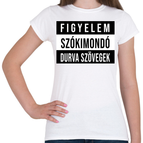 1 kép PRINTFASHION Figyelem Szókimondó Durvaszöveg - Női póló - Fehér