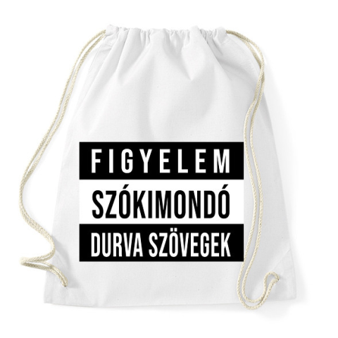 1 kép PRINTFASHION Figyelem Szókimondó Durvaszöveg - Sportzsák, Tornazsák - Fehér