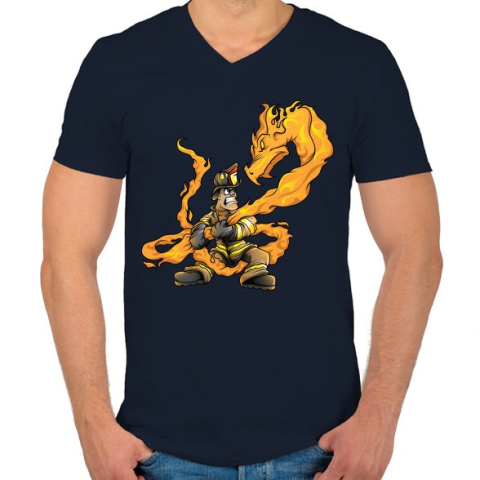 1 kép PRINTFASHION Firedragon - Férfi V-nyakú póló - Sötétkék