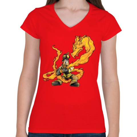 1 kép PRINTFASHION Firedragon - Női V-nyakú póló - Piros