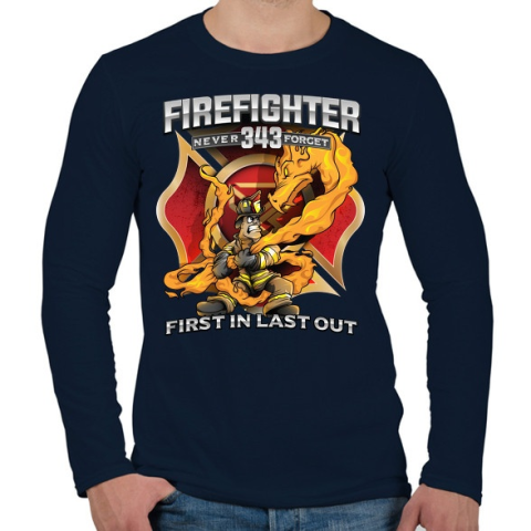 1 kép PRINTFASHION Firefighter Firedragon - Férfi hosszú ujjú póló - Sötétkék