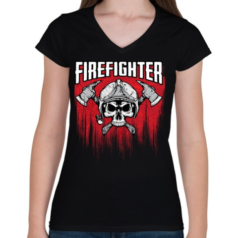 1 kép PRINTFASHION Firefighter - Női V-nyakú póló - Fekete
