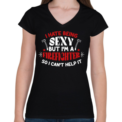 1 kép PRINTFASHION Firefighter - Női V-nyakú póló - Fekete
