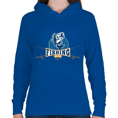 1 kép PRINTFASHION Fishing club - Női kapucnis pulóver - Királykék