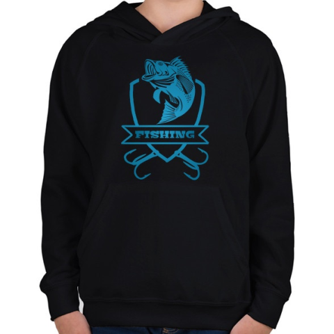 1 kép PRINTFASHION fishing - Gyerek kapucnis pulóver - Fekete