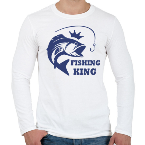 1 kép PRINTFASHION Fishing KIng - Férfi hosszú ujjú póló - Fehér