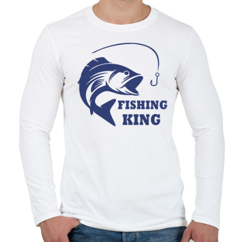 1 kép PRINTFASHION Fishing King - Férfi hosszú ujjú póló - Fehér