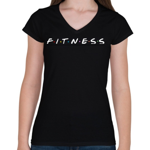 1 kép PRINTFASHION Fitness Friends - Női V-nyakú póló - Fekete