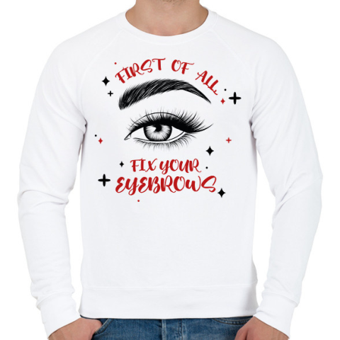 1 kép PRINTFASHION Fix your eyebrows - Férfi pulóver - Fehér