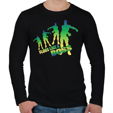 1 kép PRINTFASHION Floss like a Boss - Férfi hosszú ujjú póló - Fekete