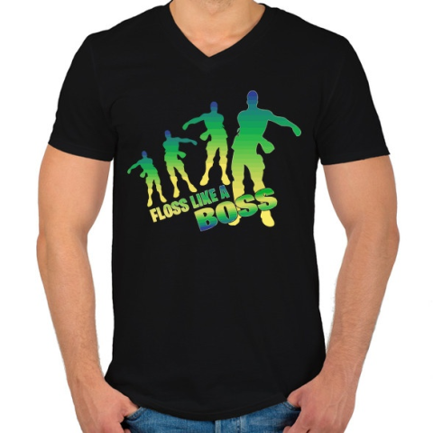 1 kép PRINTFASHION Floss like a Boss - Férfi V-nyakú póló - Fekete