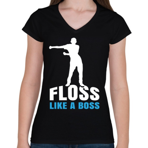 1 kép PRINTFASHION Floss like a boss - tánc - Női V-nyakú póló - Fekete
