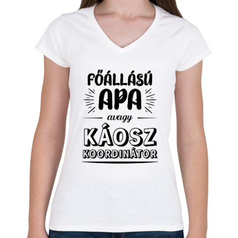 1 kép PRINTFASHION Főállású apa - Női V-nyakú póló - Fehér