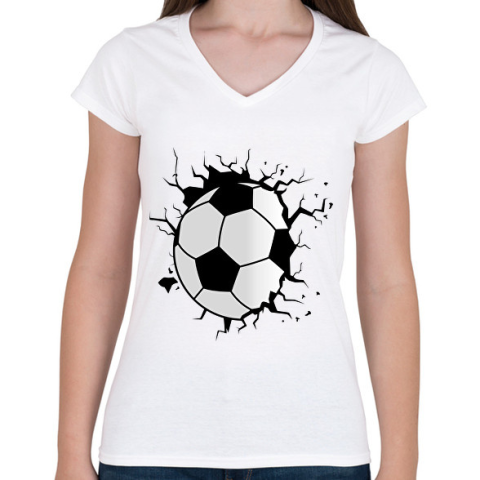 1 kép PRINTFASHION focilabda - Női V-nyakú póló - Fehér