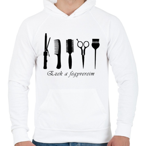 1 kép PRINTFASHION Fodrász fegyverek - Férfi kapucnis pulóver - Fehér