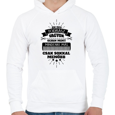 1 kép PRINTFASHION Fodrász - Férfi kapucnis pulóver - Fehér