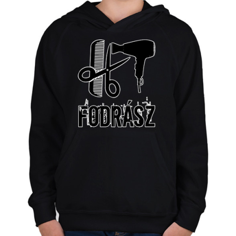 1 kép PRINTFASHION Fodrász - Gyerek kapucnis pulóver - Fekete