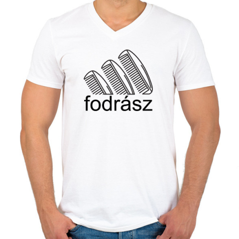 1 kép PRINTFASHION Fodrász - márka - Férfi V-nyakú póló - Fehér