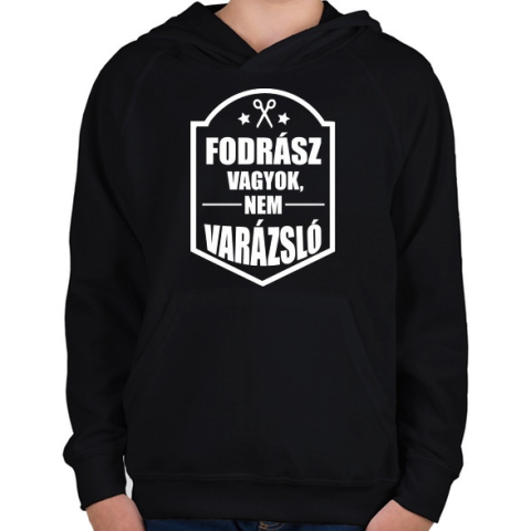 1 kép PRINTFASHION FODRÁSZ, NEM VARÁZSLÓ - Gyerek kapucnis pulóver - Fekete