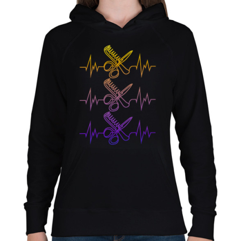 1 kép PRINTFASHION Fodrász szívverés - Női kapucnis pulóver - Fekete