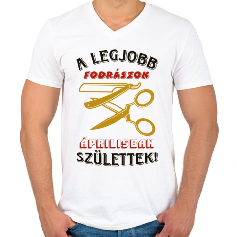 1 kép PRINTFASHION Fodrász szülinapja április színes - Férfi V-nyakú póló - Fehér