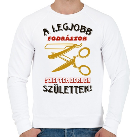 1 kép PRINTFASHION Fodrász szülinapja szeptember színes - Férfi pulóver - Fehér