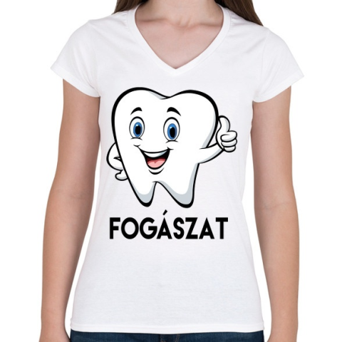 1 kép PRINTFASHION Fogászat - Női V-nyakú póló - Fehér