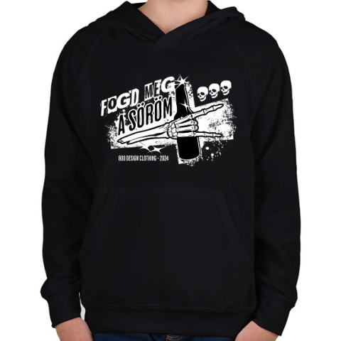 1 kép PRINTFASHION Fogd meg a söröm - Gyerek kapucnis pulóver - Fekete