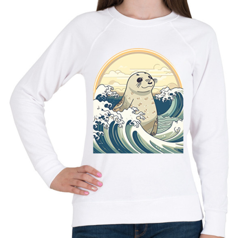 1 kép PRINTFASHION Fóka és a hullámok anime stílus - Női pulóver - Fehér