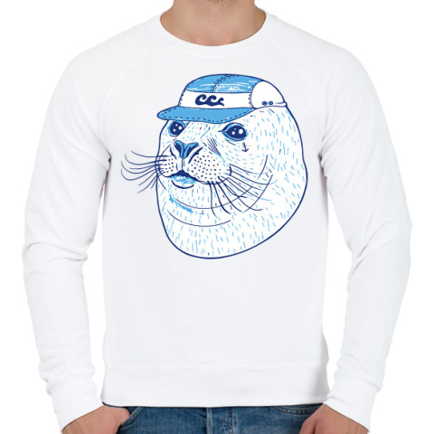 1 kép PRINTFASHION Fóka - Férfi pulóver - Fehér