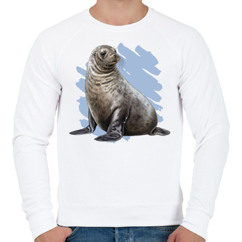 1 kép PRINTFASHION Fóka - Férfi pulóver - Fehér