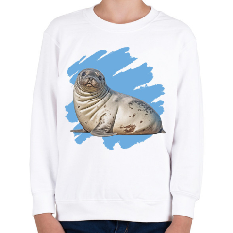 1 kép PRINTFASHION Fóka - Gyerek pulóver - Fehér
