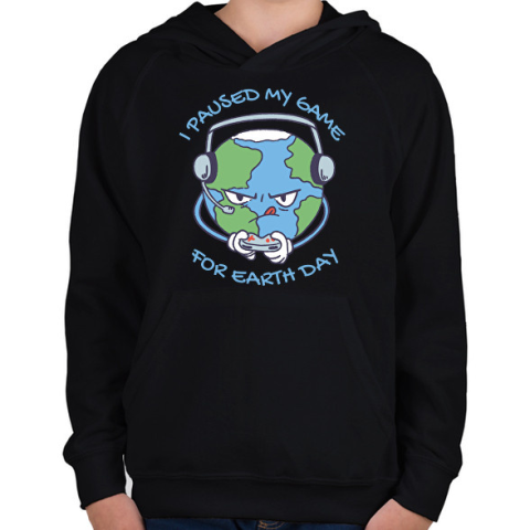 1 kép PRINTFASHION Föld napi gamer - Gyerek kapucnis pulóver - Fekete