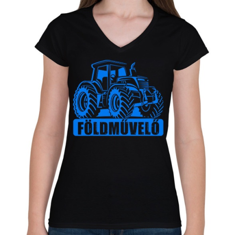 1 kép PRINTFASHION Földművelő New Holland - Női V-nyakú póló - Fekete