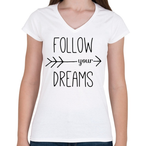 1 kép PRINTFASHION Follow your dreams - Női V-nyakú póló - Fehér