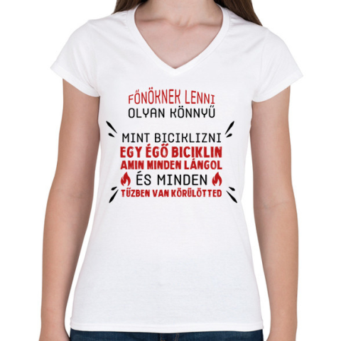 1 kép PRINTFASHION Főnöknek lenni olyan könnyű - Női V-nyakú póló - Fehér