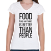 1 kép PRINTFASHION Food is better than people - Női V-nyakú póló - Fehér