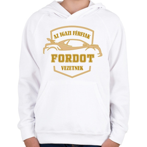 1 kép PRINTFASHION Fordos sofőr - Gyerek kapucnis pulóver - Fehér