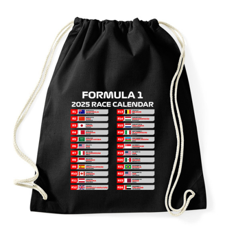 1 kép PRINTFASHION Forma 1 2025 versenynaptár - Sportzsák, Tornazsák - Fekete