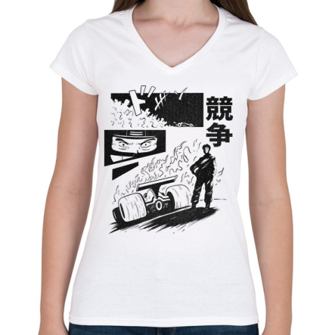 1 kép PRINTFASHION Forma 1 anime - Női V-nyakú póló - Fehér