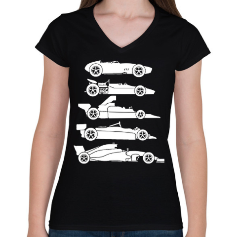 1 kép PRINTFASHION Forma 1 fejlődés - Női V-nyakú póló - Fekete