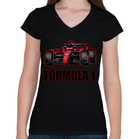 1 kép PRINTFASHION Forma 1 - Női V-nyakú póló - Fekete