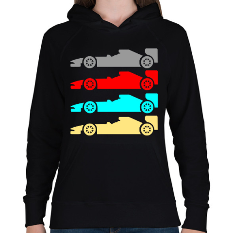 1 kép PRINTFASHION forma 1 verseny autók - Női kapucnis pulóver - Fekete
