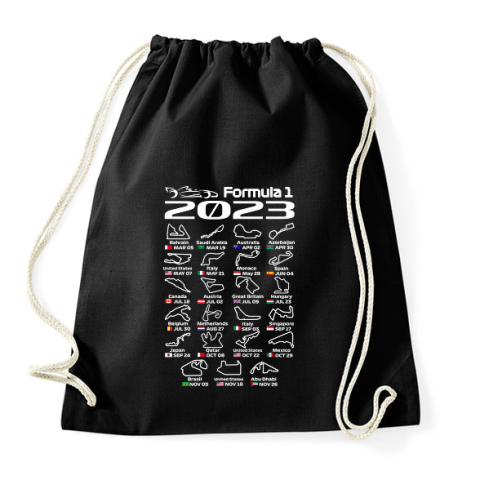 1 kép PRINTFASHION Formula 1 versenynaptár 2023 - Sportzsák, Tornazsák - Fekete