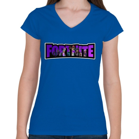 1 kép PRINTFASHION Fortnite8 - Női V-nyakú póló - Királykék
