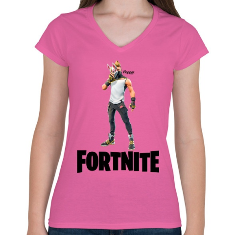 1 kép PRINTFASHION Fortnite #4 /Black/ - Női V-nyakú póló - Rózsaszín