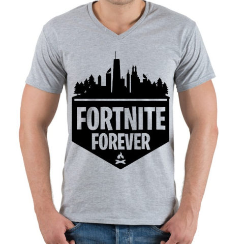 1 kép PRINTFASHION Fortnite Forever - Férfi V-nyakú póló - Sport szürke