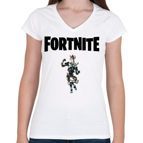 1 kép PRINTFASHION Fortnite Mecha Kitty - Női V-nyakú póló - Fehér