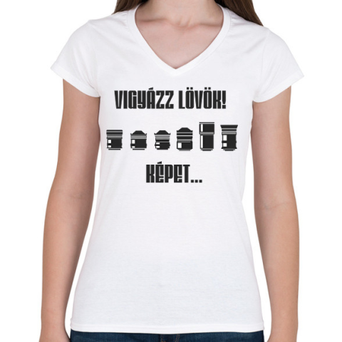 1 kép PRINTFASHION Fotós - Női V-nyakú póló - Fehér